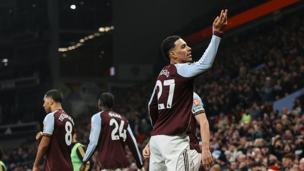 Aston Villa (4-2-3-1): Martinez; Maatsen, Lindelof, Konsa, Cash; Onana, Kamara; Rogers, Tielemans, McGinn; Watkins