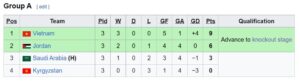 Setelah unggul, Vietnam bermain disiplin di 30 menit sisa pertandingan untuk mengamankan poin penuh. Mereka pun finis sebagai juara grup A dengan 9 poin sempurna.